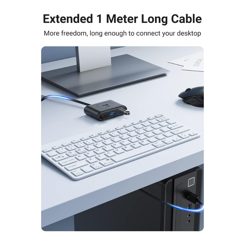 ج: يقوم بتوسيع منافذ USB المتاحة لديك بمقدار أربعة منافذ - وهو أمر مفيد عندما تكون منافذ سطح المكتب أو الكمبيوتر المحمول محدودة - مع الحفاظ على السرعة العالية والراحة.