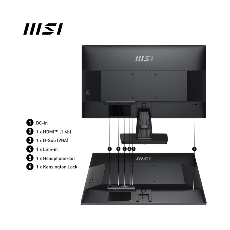 SIMPLE YET FLEXIBLE - The monitor comes with 100mm VESA brackets for wall or arm mounting (e.g.- MSI VESA Arm MT81)- while the stand is tilt adjustable & includes a handy cable management clip; Built-in 2W speakers are convenient for conference calls